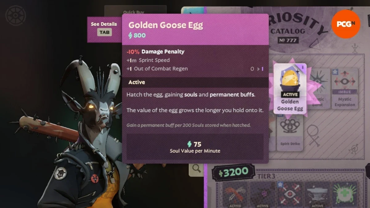 Одним из самых необычных нововведений стал предмет Golden Goose Egg. Он стоит 800 душ и сначала даёт небольшой штраф к урону, но его ценность растёт со временем. Чем дольше игрок держит предмет, тем больше бонусов можно получить при его использовании, что делает его своеобразной долгосрочной инвестицией.